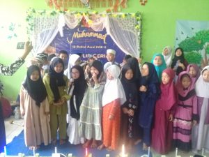 Acara di isi dengan berbagai kegiatan diantaranya marawis, pembacaan saritilawah dan juga kita mengundang Yayasan Yatim Piatu, untuk sedikit menyumbangkan infaq dan sedekahnya, karena dengan adanya momentum Maulid ini kita pihak sekolah ingin berbagi dengan sesama, khususnya dengan anak Yatim Piatu.