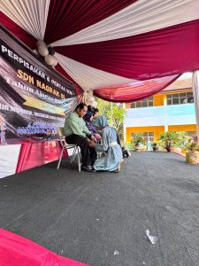 Suasana haru dan bahagia menghiasi Halaman Sekolah yang acaranya dikemas dengan panggung yang sederhana namun cukup meriah dan penuh kebersamaan.